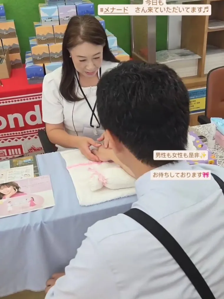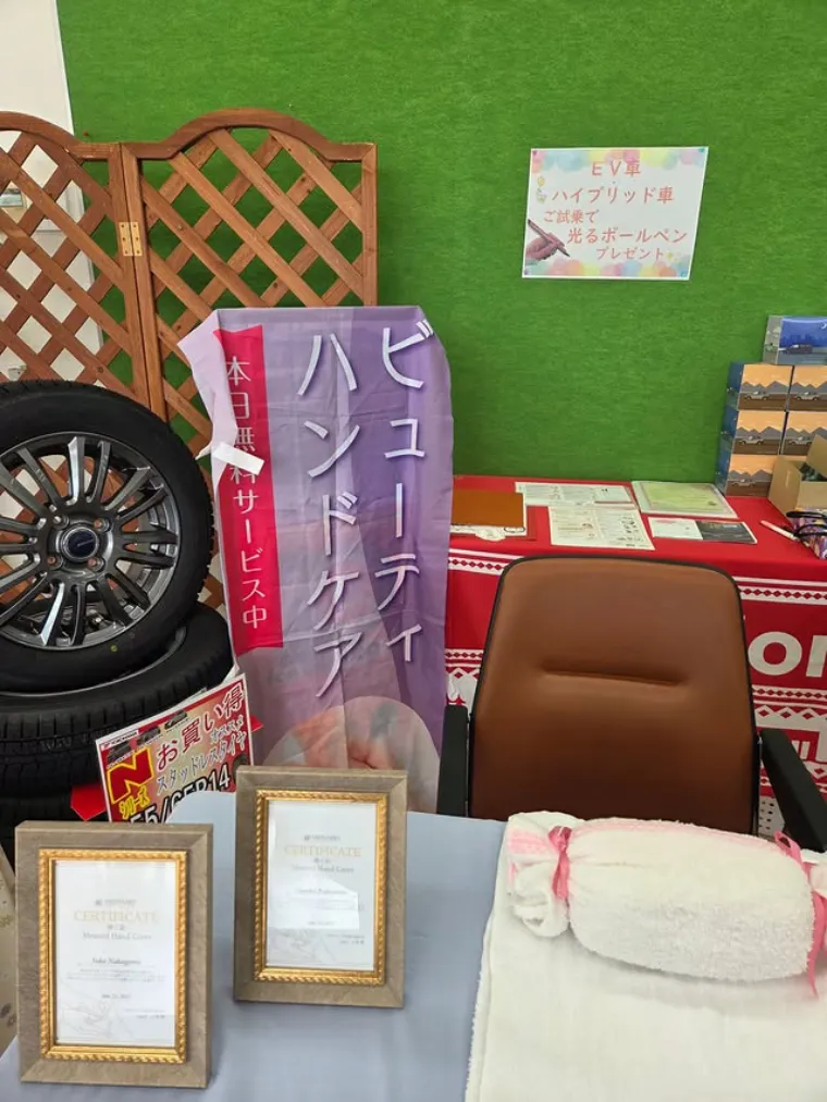 2025-10-13 ホンダカーズ滋賀南野洲店です。10/11~10/12はメナードさんに来ていただき【無料ハンドマッサージ】のイベントを開催していました😊✨ 女性・男性、お子様も性別年齢問わず、マッサージしてもらっていました💖定期的に開催しているので、今回来れなかった方!次回は是非遊びに来てください✨ メナードさん2日間ありがとうございました😊