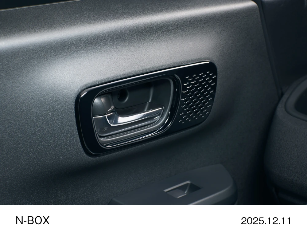 エクステリアは、フォグライトガーニッシュやカスタムデザインフロントグリル、リアライセンスガーニッシュ、アルミホイールにベルリナブラック塗装を、アウタードアハンドルやドアミラー、N-BOX/CUSTOMエンブレムにクリスタルブラック・パール塗装をそれぞれ施すことによって、より引き締まった印象をもたらします。また、インテリアにもピアノブラック塗装のドアオーナメントパネルとプライムスムースドアライニングアームレスト※3を採用し、落ち着きと高級感のある空間としています。